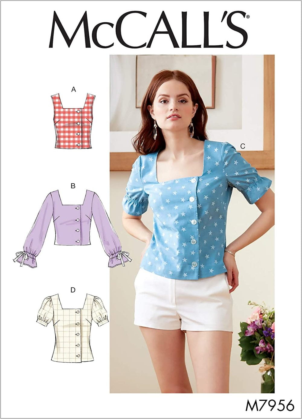 Juisharee Mccalls M7956ad5 Womens Square Neckline Button Up Blouse Sewing Patterns Sizes 12 20 Various White Walmart Com